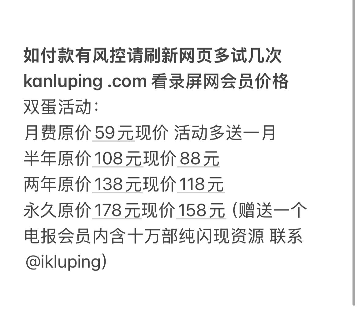 看录屏网双蛋活动开启 月费限量100单售完为止 具体价格看VIP 感谢大家支持 如有付款风险 请刷新网页重新付款 感谢各位衣食父母支持 祝大家心情愉快 直播录屏网 kanluping.com
